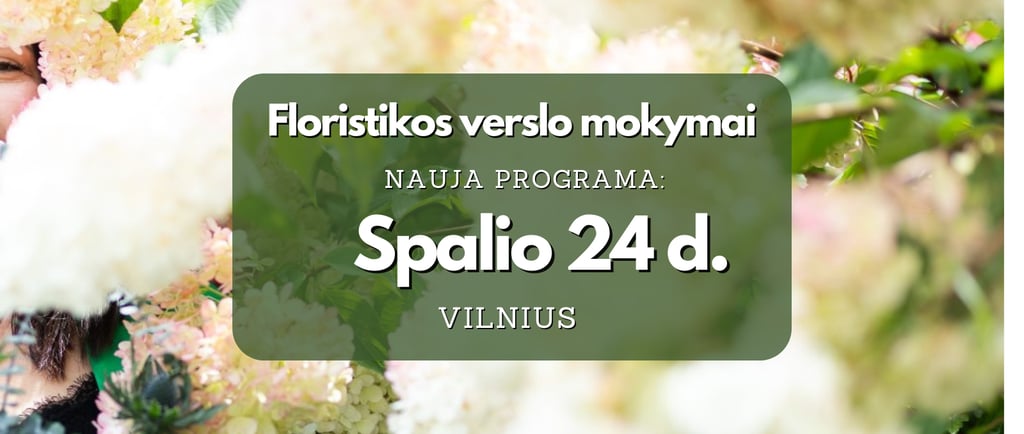 Vienos dienos mokymai Vilniuje, skirti pradedantiems ir dirbantiems floristams, norintiems išmokti ne tik kurti, bet ir sėkmingai parduoti.
