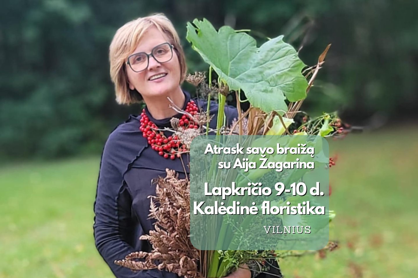 Pirmą kartą į Vilnių atvažiuoja ekspertė, daugkartinė tarptautinių konkursų teisėja, aukšto meistriškumo floristikos mokyklos A-Z Rygoje įkūrėja Aija Žagarina. Tai ko gero labiausiai patyrusi Latvijos floristikos mokytoja